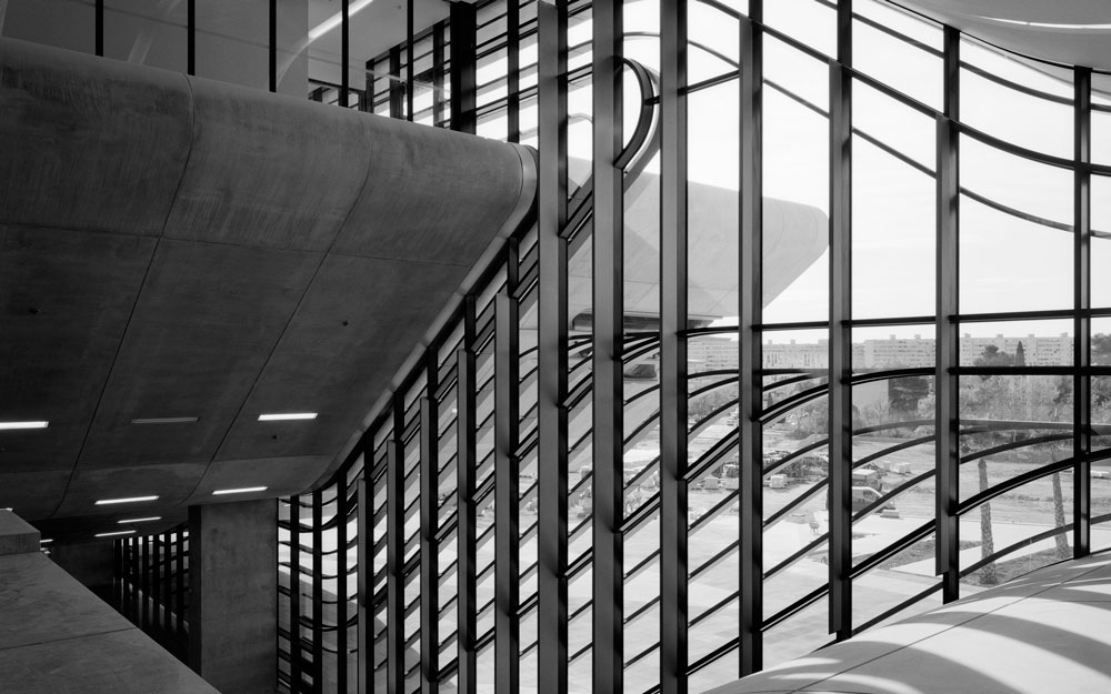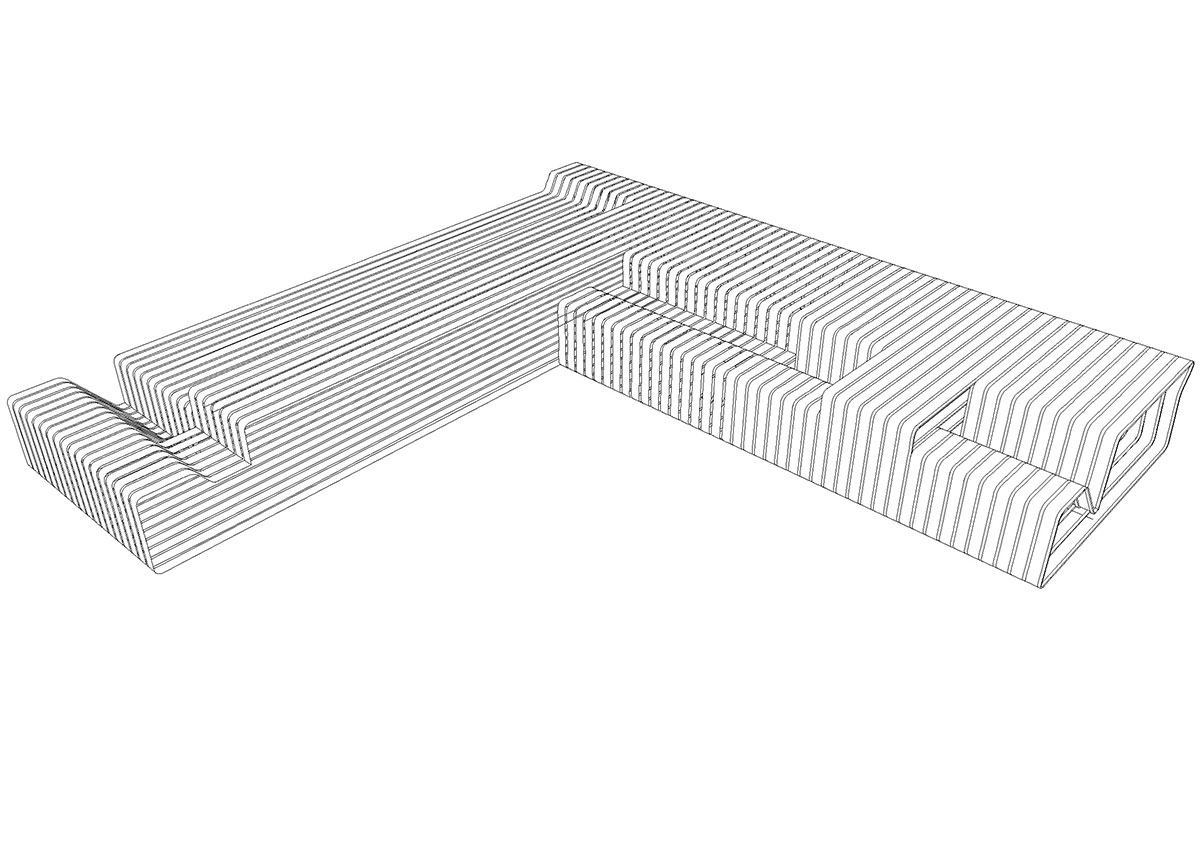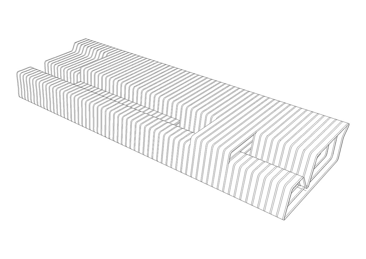 The building is the unification of three institutions--the archive, the library, and the sports department--within a single envelope. The design is reminiscent of a large tree-trunk that has been laid horizontally. The archive is located at the solid base of the trunk, followed by the slightly more porous library with the sports department and its well-lit offices on far end where the trunk bifurcates and becomes much lighter. ‘Branches’ project vertically off the main trunk to articulate points of access to the various institutions.