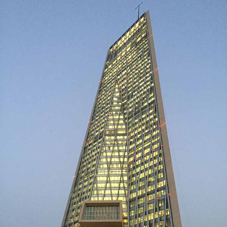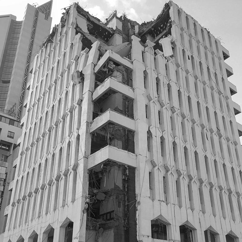 Al-Sawaber was recently demolished. It was built in 1981 by Canadian architect Arthur Erickson Associates. With the support of Save Al-Sawaber and many others to resist the threat of demolition it finally succumbed to its collapse in 2020.